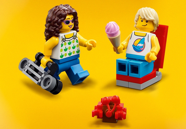- 2 minifigures – The playset comes with male and female minifigures to drive the camper van, live on the 2 floors of the summerhouse or enjoy treats at the ice-cream shop